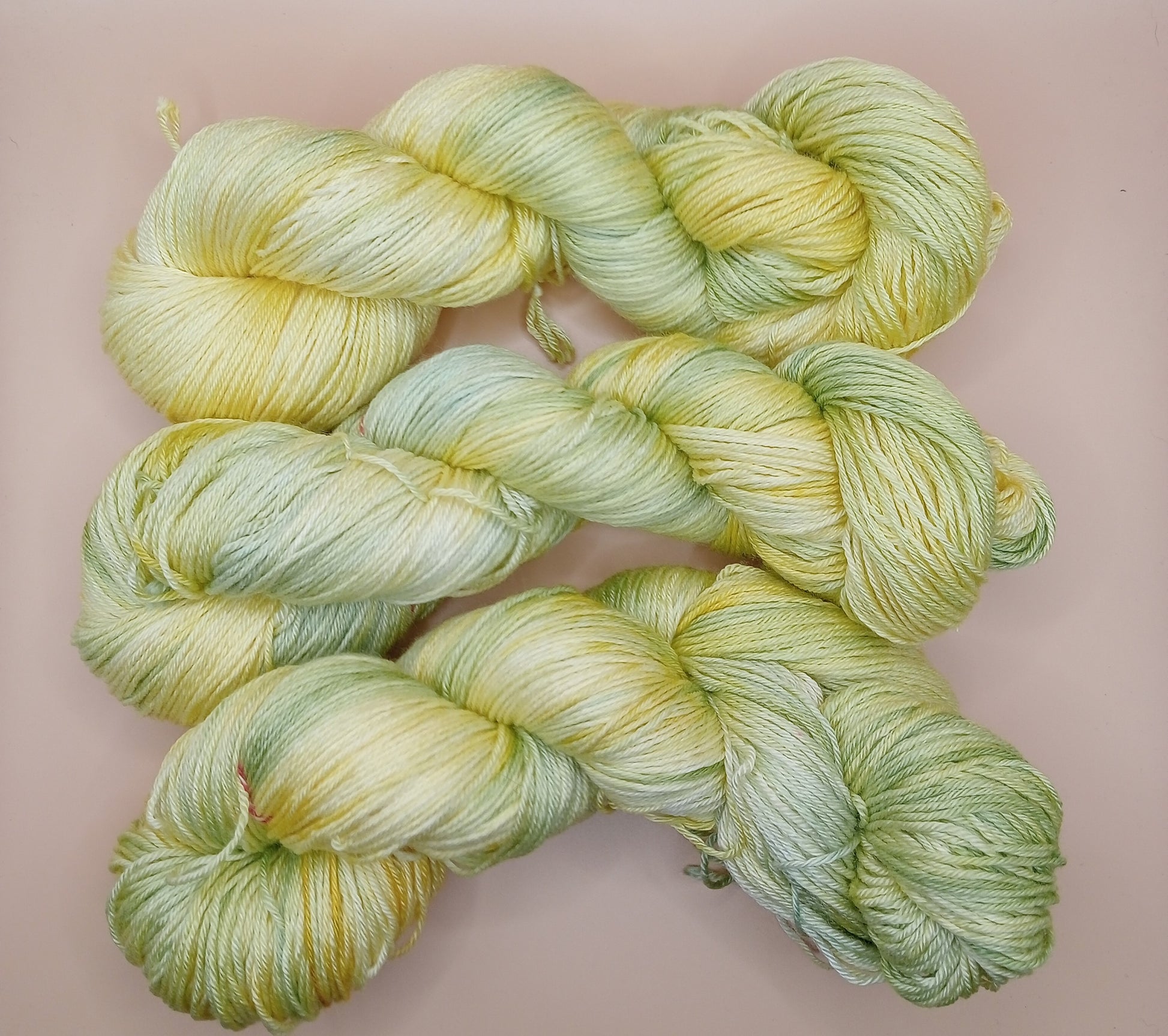 Introducing the "Kakapo" yarn, a luxurious blend of 100G Merino and Silk that has been hand dyed in beautiful Lemon yellows and lime greens.