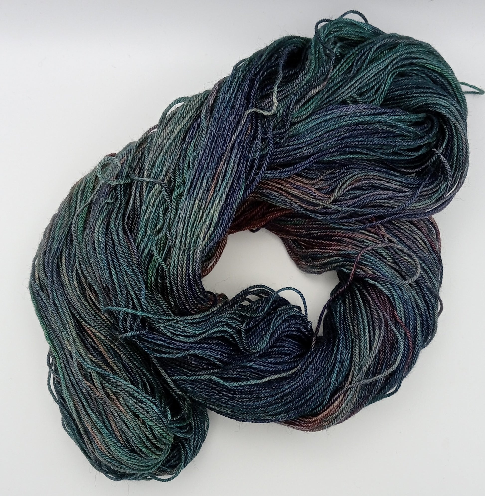 This Yarn is hand dyed by myself using acid dyes and has been dyed with a gentle heat being handled as little as possible